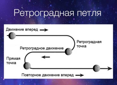 Ретроградная фаза движения планет – всего лишь одна из фаз, в которых могут пребывать планеты. Всего же у каждой планеты три основных фазы движения: директная (прямое движение), стоячая (во время нее не меняются координаты планеты) и ретроградная (движение планеты по тем градусам, которые она уже проходила). Из директной фазы в ретроградную планета переходит через фазу стоячую, и затем из ретроградной в директную возвращается тоже через стоячую фазу. Вся эта последовательность фаз называется петлей планет: наблюдателю с Земли кажется, что планета описывает петли, переходя из директной фазы в ретроградную, а затем из ретроградной в директную, а также останавливается на какое-то время в стоячих фазах.